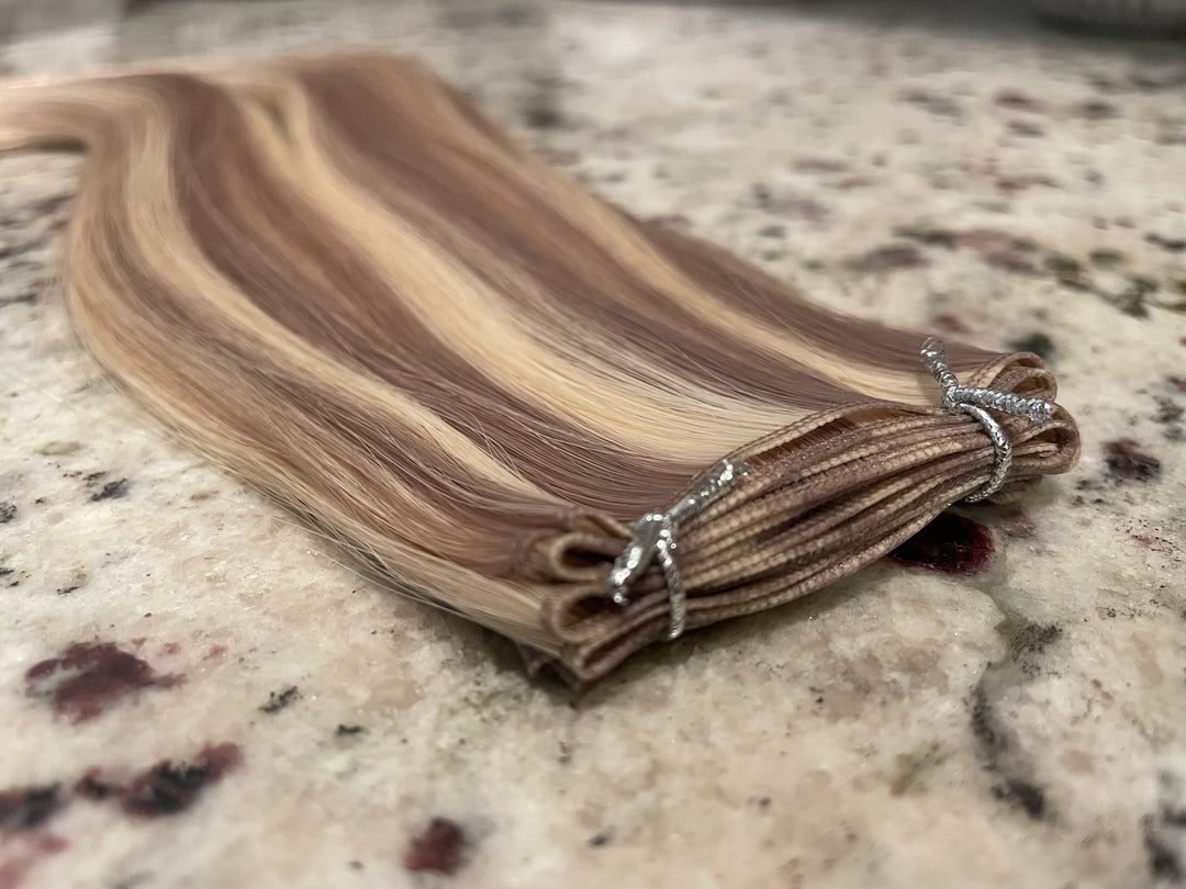 These innovative wefts provide a seamless and natural look, making them a popular choice among stylists and clients alike. Genius wefts do not have a mustache like traditional hand-tied and machine wefts. You can cut them anywhere without them unraveling, and they give you a very seamless and flat fit to the head while maintaining thickness through the ends. The hair will also expand by 30% once shampooed and blow-dried and blends with fine and medium densities.